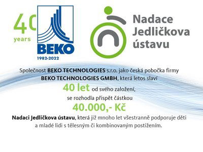 U příležitosti 40 LET od založení společnosti BEKO TECHNOLOGIES jsme se rozhodli přispět na správnou věc a podpořit NADACI JEDLIČKOVA ÚSTAVU, která všestranně podporuje děti i mladé lidi s tělesným či kombinovaným postižením