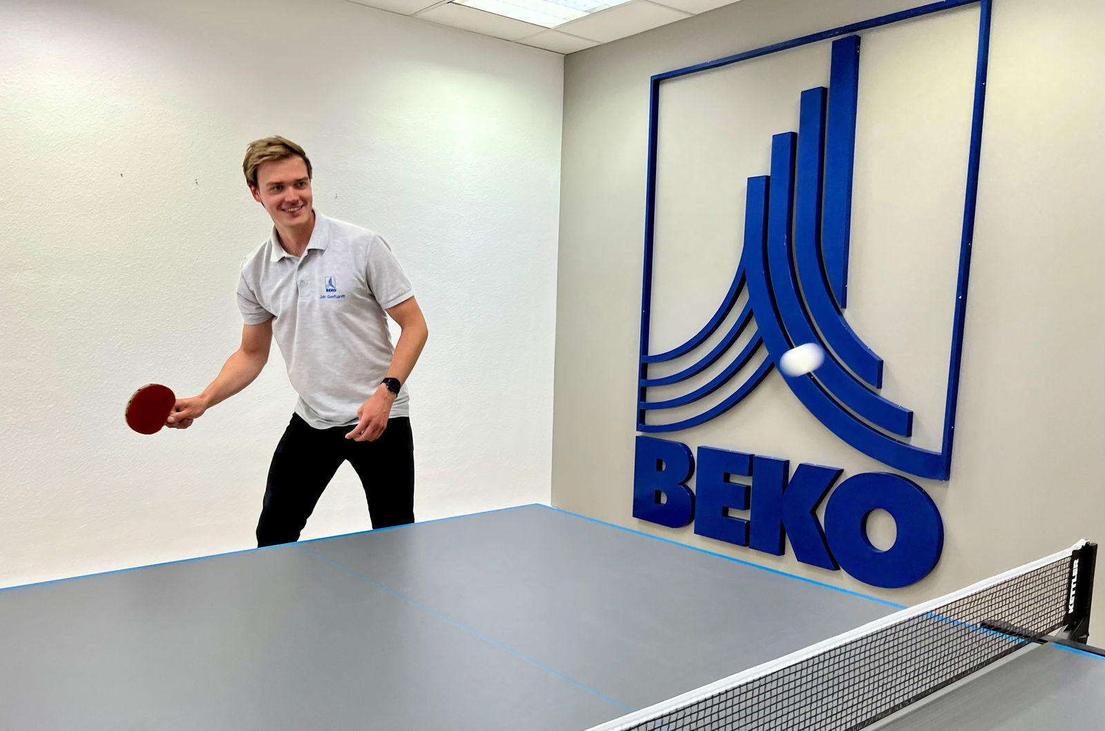 Mit den Kollegen beim Tischtennis in der Mittagspause.