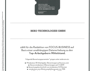 Dieses Jahr zählt die BEKO TECHNOLOGIES dazu – über diese besondere Auszeichnung…