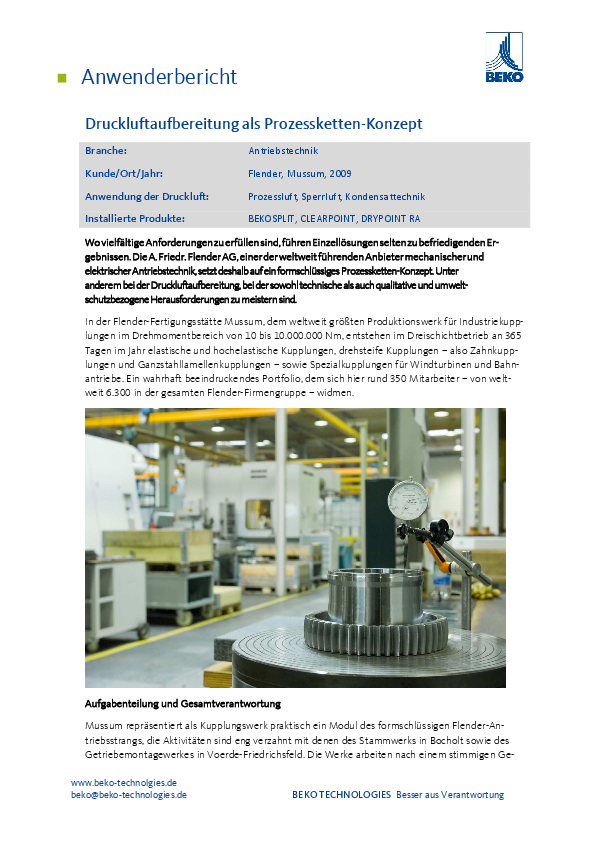 Alles in allem hat Flender an der Produktionsstätte in Mussum eine nahtlose, perfekt aufeinander abgestimmte Prozesskette in der Druckluftaufbereitung.