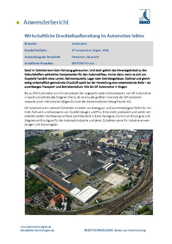 Wirtschaftliche Druckluftaufbereitung im Automotive Sektor