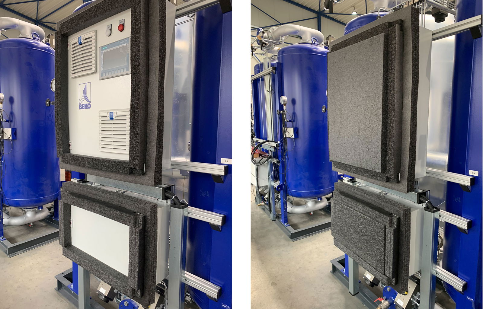 After a thorough examination of possibilities and after discussions with various suppliers, a partner was found who could not only supply precisely fitting protective coverings for sensitive parts of the EVERDRY equipment, but who also worked with a special material. "This packaging is made of recycled plastic. This means that we do not consume valuable resources and do not create any new plastic waste. In addition, because it is made to measure, it offers significantly more security for sensitive appliance elements and saves us an enormous amount of shrink film and time," says Stefan Müther. "At the customer's, the now volume-reduced packaging material can be disposed of normally, because it is returned to the recycling cycle through the usual waste sorting and can thus be processed again and again into new products."