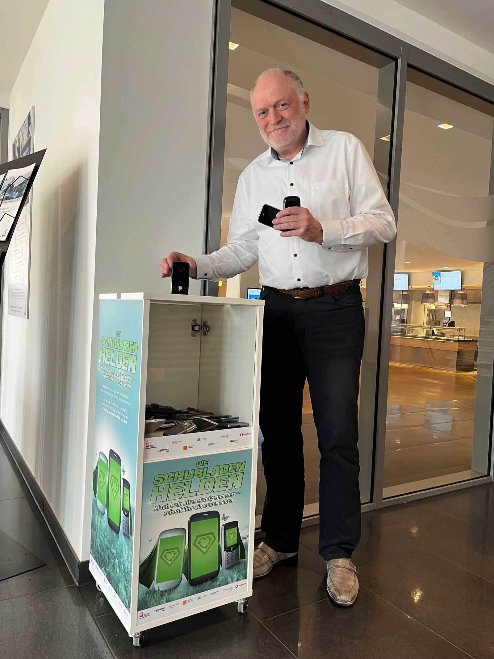 In Germany, around 210 million of old cell phones are lying around unused in households, potentially representing a valuable resource. For this reason, we decided to support the " Drawer Heroes" project, which was set up by well-known companies and associations in the Düsseldorf area to collect as many of these cell phones as possible.