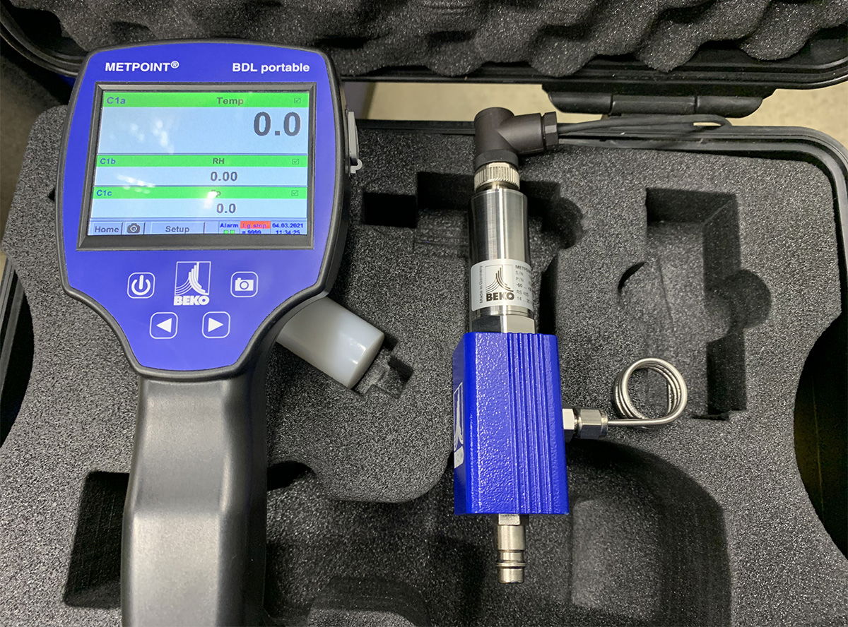Excessive moisture in a compressed air system can lead to considerable problems. For example, when transporting powdery hygroscopic (water-attracting and binding) materials such as cement, flour or milk powder, which are frequently conveyed with compressed air. This can lead to clumping of the transported material or undesired adhesion to the walls of the pipes or hoses. In the long term, corrosion in the plant and other consequential problems are conceivable.