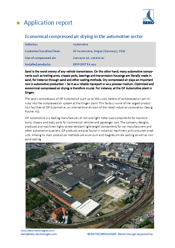 The seven compressors of GF Automotive push up to 300 cubic meters of compressed air per minute into the compressed air system at the Singen plant. This factory is one of the largest production facilities of GF Automotive, an international division of the listed industrial corporation Georg Fischer AG.