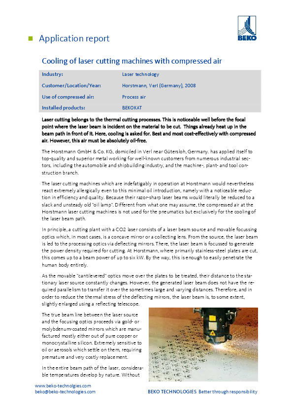 The laser cutting machines which are indefatigably in operation at Horstmann would nevertheless react extremely allergically even to this minimal oil introduction, namely with a noticeable reduction in efficiency and quality. Because their razor-sharp laser beams would literally be reduced to a slack and unsteady old "oil lamp". Different from what one may assume, the compressed air at the Horstmann laser cutting machines is not used for the pneumatics but exclusively for the cooling of the laser beam path.
