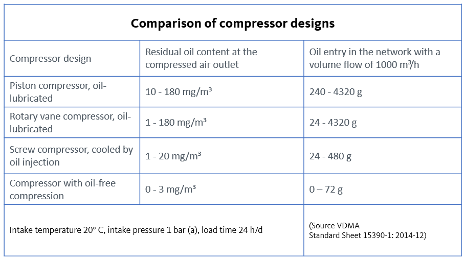 Not only oil-lubricated but also oil-free compressors (via intake air!) can be a source of residual oil vapours in the compressed air network.