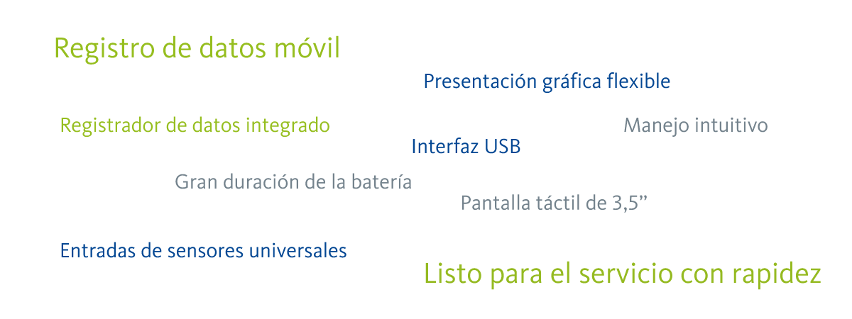 Por medio de la entrada de sensor universal está asegurada una conectividad sencilla con todos los transductores de medición usuales en la industria. El manejo intuitivo se lleva a cabo a través de una pantalla táctil legible de 3,5”. Los datos se pueden transmitir cómodamente a un PC por medio de un dispositivo USB y se pueden interpretar fácilmente por medio del software de evaluación METPOINT READER SW201. Con esta tecnología usted tendrá en todo momento todo a la vista y bajo control.