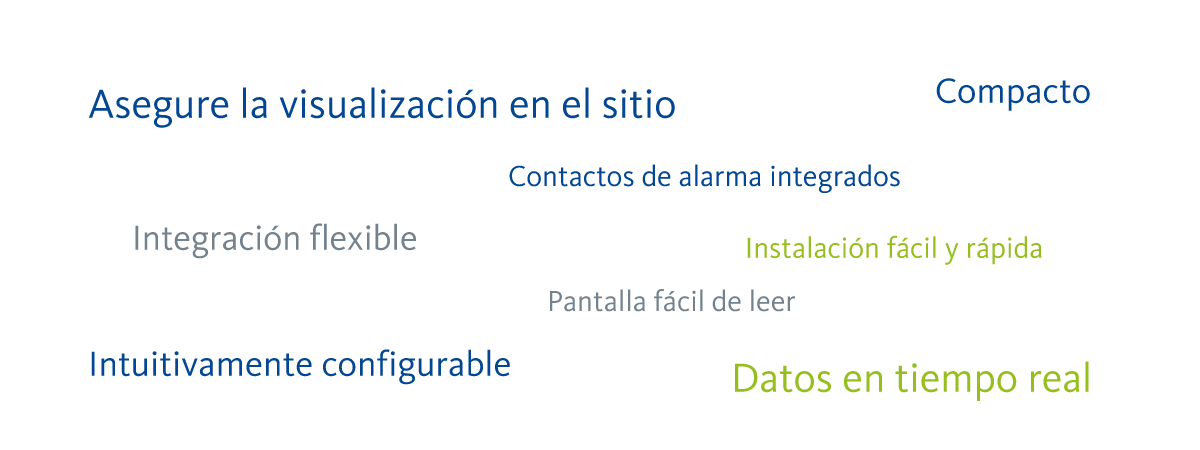 Los indicadores conectables son apropiados para todos los medidores con una salida analógica. Se puede programar a través de un sistema de menú por medio de dos teclas. Los ajustes de usuario (rango de medición, valores de alarma) se mantienen invariables en caso de fallo eléctrico o de cambiar a otros sensores. Cuando se supere el rango en ambas direcciones, se mostrarán de manera óptica (LED).