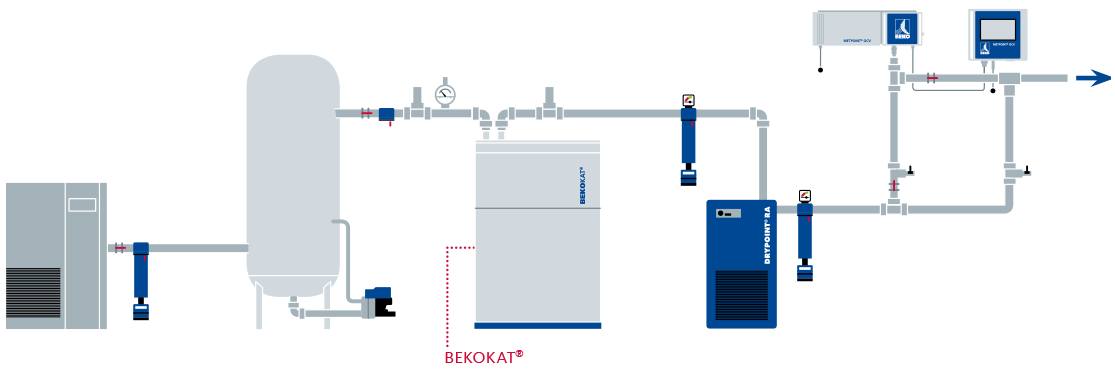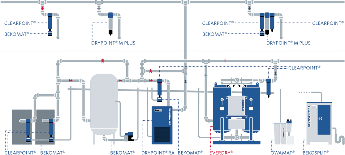 El EVERDRY® COMBITROC CT asegura un procesamiento óptimo combinando lo mejor de los secadores frigoríficos y de adsorción. En época de calor el secador frigorífico ahorra energía proporcionando un punto de rocío de presión de +3 ° C. En épocas más frías se requiere un punto de rocío más bajo, para prevenir adecuadamente la condensación, entonces el sistema cambia automáticamente al secador de adsorción regenerado por calor creando un punto de rocío de presión de -40 ° C. Otra ventaja de esta combinación: 100% de redundancia en caso de fallo del secador.