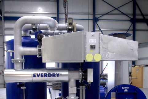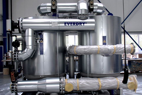 Con EVERDRY® FRA-V la desorción tiene lugar, en sentido contrario al del proceso de adsorción, con el aire calefactado del soplador y el enfriamiento, en equicorriente al proceso de adsorción, con aire del ventilador. Esto evita la pérdida de aire comprimido para la regeneración (Purga cero). Reducción de costes de energía debido a la utilización de vapor. Mayor fiabilidad operacional debido al calentador eléctrico redundante.