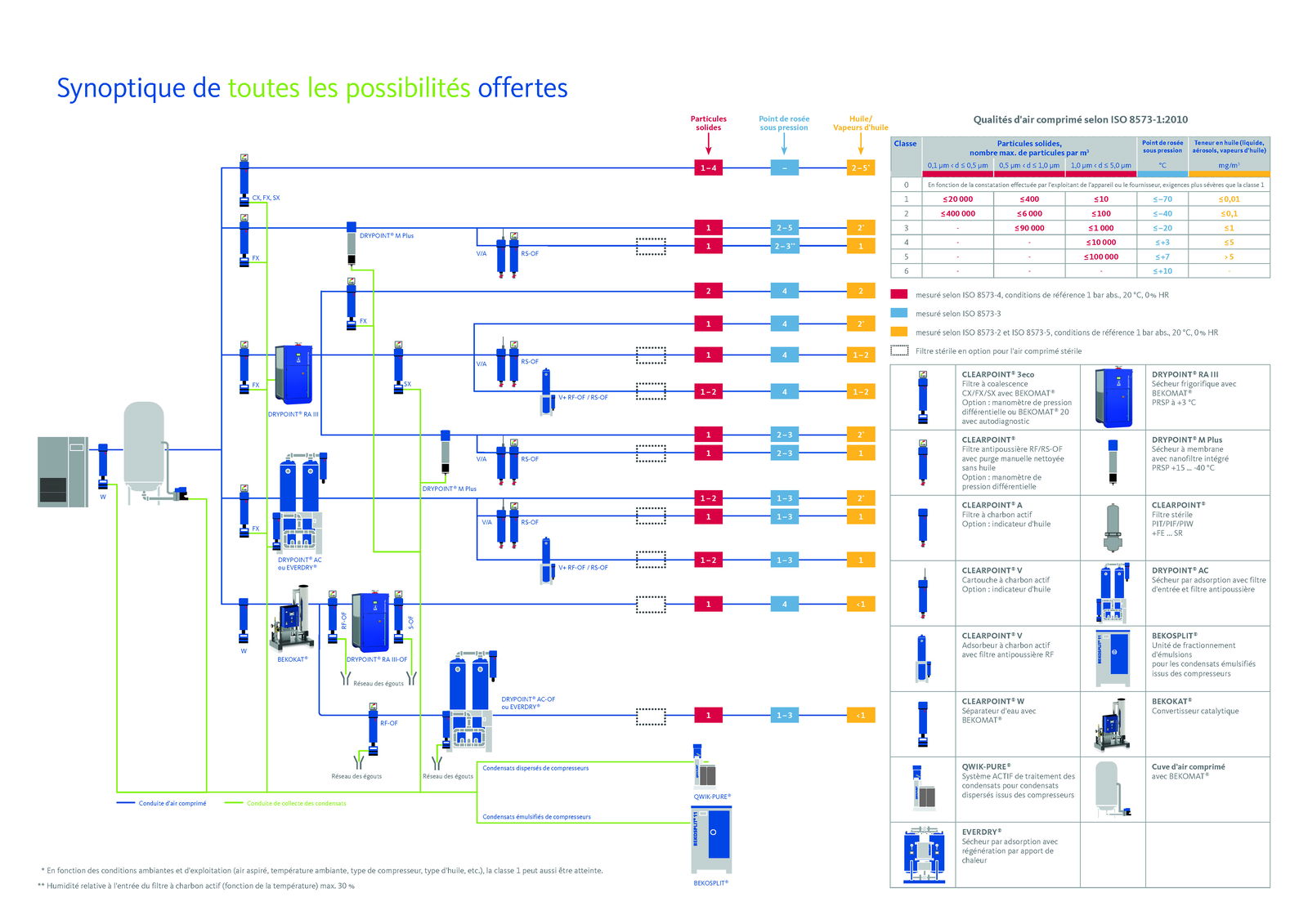 synoptique de toutes les possibilités offertes. Ce synoptique permet de savoir quels produits de la gamme de traitement de l'air comprimé sont les plus adéquats pour atteindre une classe de qualité souhaitée.