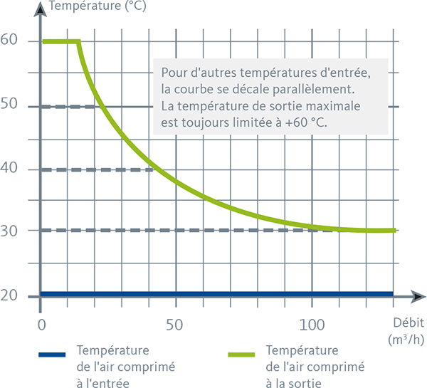 | Température de sortie de l'air comprimé | Température réglable de +30 °C à +60 °C | |