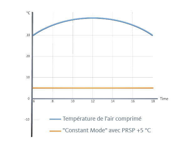 Constant Mode: Réglage d'un point de rosée stable sous pression à la sortie.