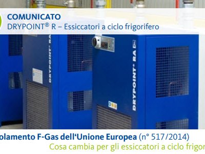 Comunicato importante: il regolamento comunitario F-GAS e gli essiccatori a ciclo frigorifero