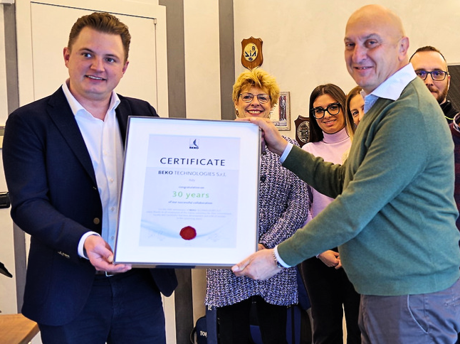 Il 29 novembre è stata una giornata molto speciale per noi di BEKO TECHNOLOGIES Italia: il raggiungimento di ben 30 anni di attività, celebrati con la consegna di una targa dal Managing Director della casa madre tedesca Yannick Koch nelle mani del nostro AD Mauro Squaiella.