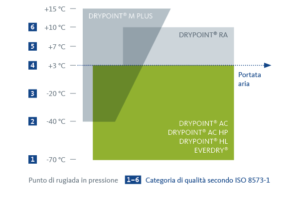 DRYPOINT AC è la serie di essiccatori ad adsorbimento con rigenerazione a freddo, EVERDRY è la gamma di essiccatori ad adsorbimento con rigenerazione a caldo. Entrambi i sistemi sono adatti per applicazioni con requisiti di alta qualità, in cui devono essere raggiunti punti di rugiada in pressione molto bassi o per portate d'aria molto elevate.