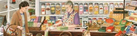 Toen ik een klein meisje was, werkte mijn oma in het weekend in een klein snoepwinkeltje. Het was piepklein, heel donker en elke centimeter was gevuld met potten, bakjes en mandjes snoep, lollies en lekkernijen. Achter de balie reikten de oude houten planken tot aan het plafond; op elke plank stonden er tientallen glazen snoeppotten.