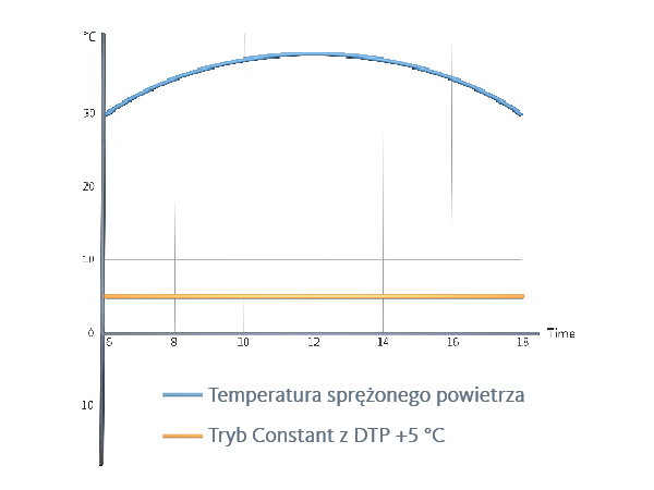 Stabilna różnica między temperaturą sprężonego powietrza i wyjściowym ciśnieniowym punktem rosy.