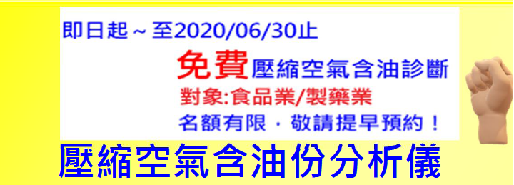 由於壓縮空氣中含油對製程造成的傷害會嚴重影響產品的品質,為提升製程品質,降低產品不良率,即日起至今年6月底止,貝克歐公司(BEKO) 對製藥業及食品業提供免費含油份檢測服務。