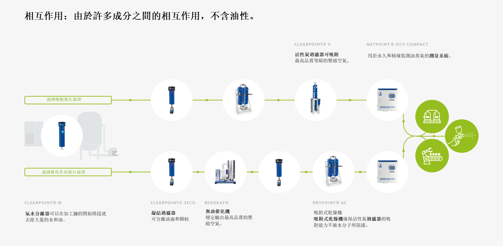在許多生產設施中,壓縮空氣直接或間接地與生產線、產品或包裝材料接觸。 殘留的油分、微生物和病菌造成的污染對產品品質、消費者安全和市場聲譽有很大影響。